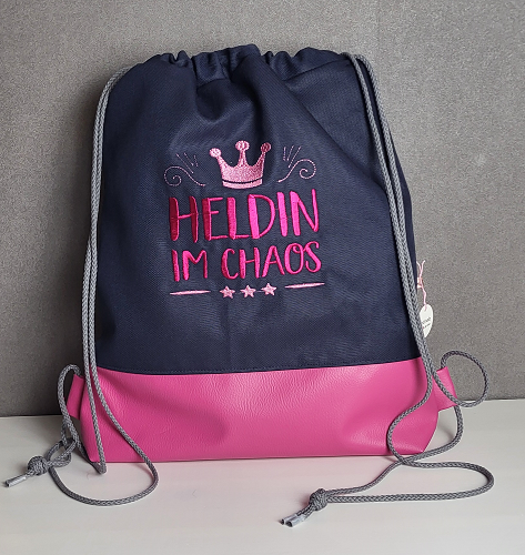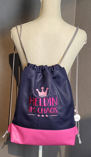 Ein Beutel sowie lässiger Rucksack mit einer witzigen, wertiger Stickerei.