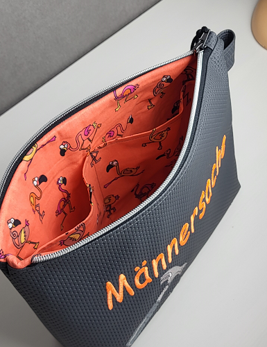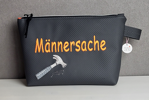 Dieses Täschchen mit der Bestickung „Männersache“ ist bestimmt ein toller Hingucker und ein ideale Begleiter eines Mannes.